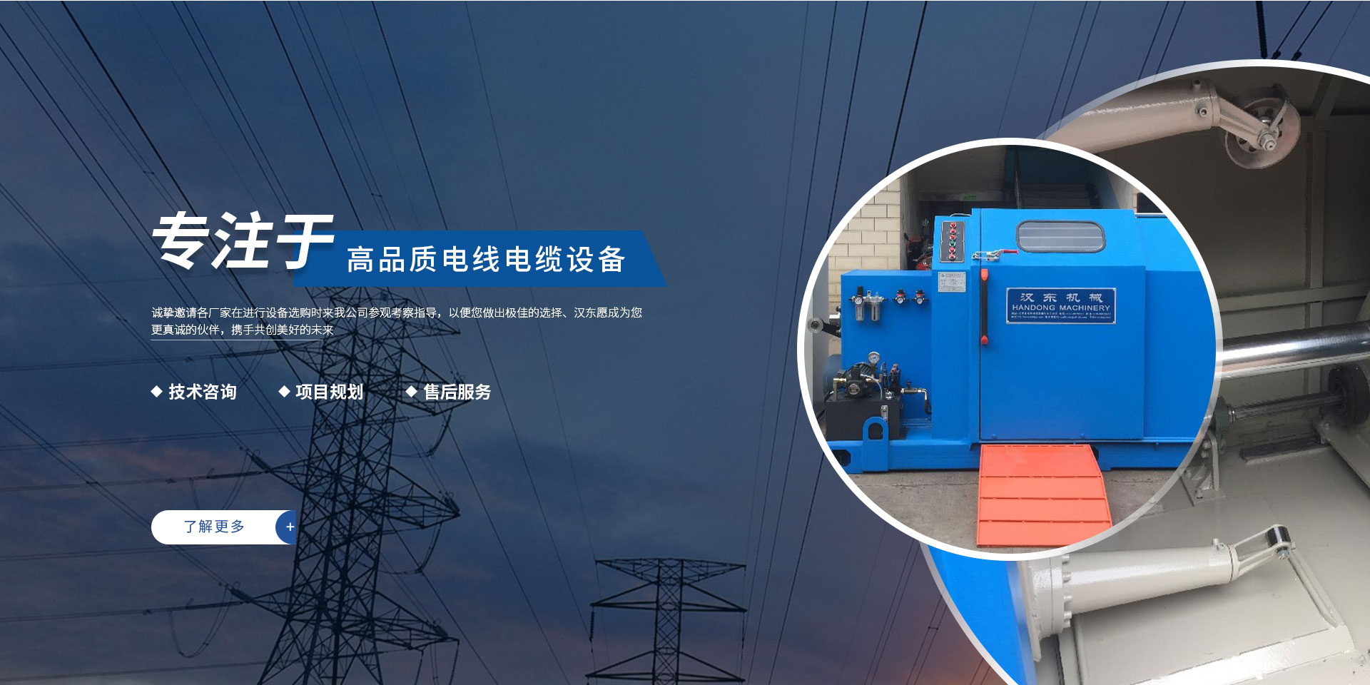 常州漢東機(jī)械始創(chuàng)于2006年,是集電線電纜機(jī)械設(shè)計(jì)、開發(fā)、制造、安裝、調(diào)試為一體化的高科技企業(yè)。本公司自開業(yè)以來,積極引進(jìn)日本,歐美等國外電線電纜設(shè)備之先進(jìn)技術(shù),先后成功推出了達(dá)到行業(yè)先進(jìn)水平的電線電纜設(shè)備,主要產(chǎn)品有擠出、繞包、束線、成纜等電線電纜固定設(shè)備。在提供系統(tǒng)設(shè)備的同時,還向客戶提供售前技術(shù)咨詢、項(xiàng)目規(guī)劃、以及售后服務(wù)。我公司本著“以人為本、科技先導(dǎo)、用戶為上”的宗旨,為客戶提供牢靠的產(chǎn)品與省心的服務(wù)。漢東愿成為您更真誠的伙伴,攜手共創(chuàng)美好的未來! 了解更多+